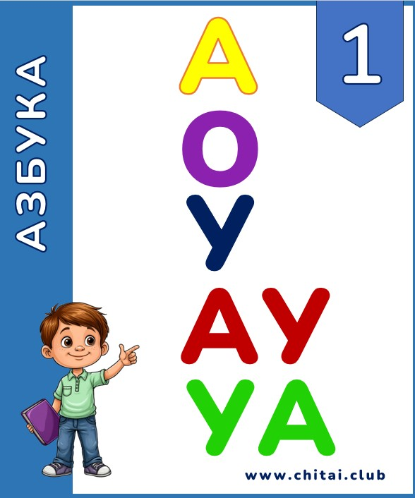 0 СЛОВ. 10 СТРАНИЦ. Это книга первого чтения. Часть Азбуки. В ней показаны буквы О, А, У и слоги АУ, УА. ... ⋙