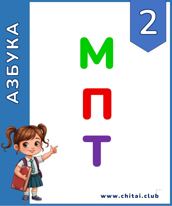 7 СЛОВ. 10 СТРАНИЦ. Это книга первого чтения. Часть Азбуки. В ней показаны буквы М, П, Т и слова к ним. ... ⋙